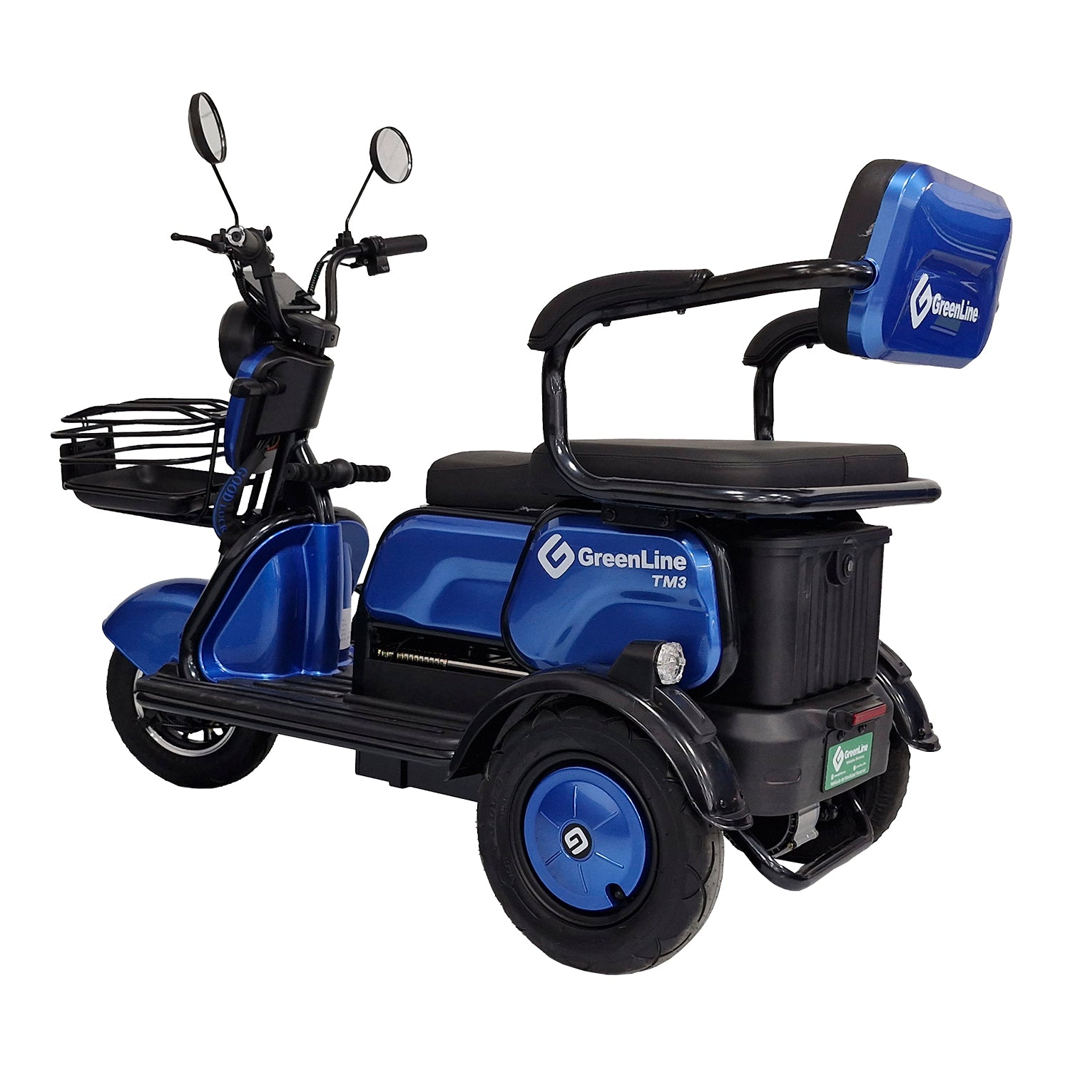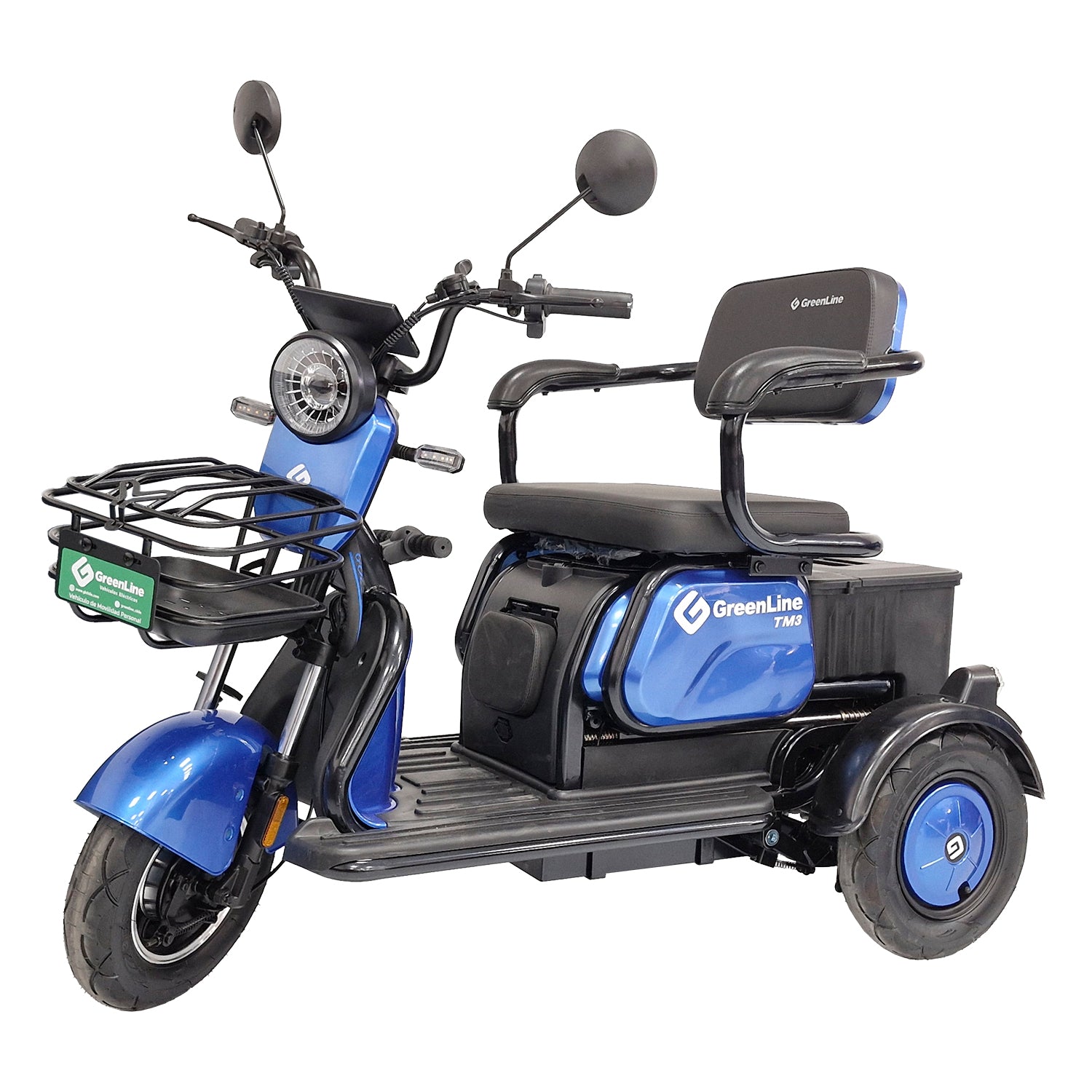 Triciclo eléctrica de paseo con con batería de plomo 48 V - 20 AH, cuenta con velocidad máxima de 25 km/h y autonomía de 35 a 40 km.