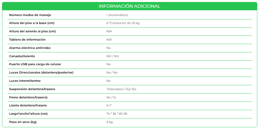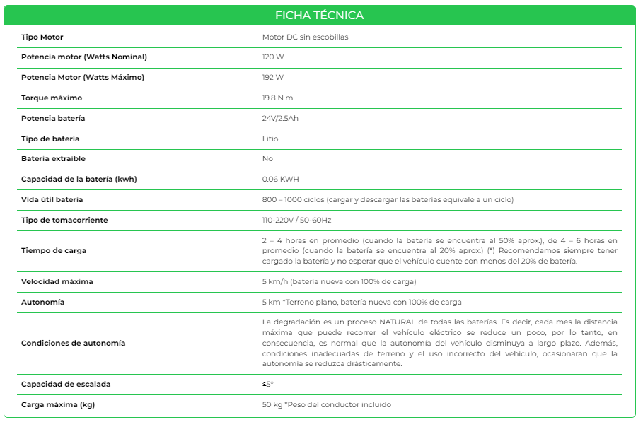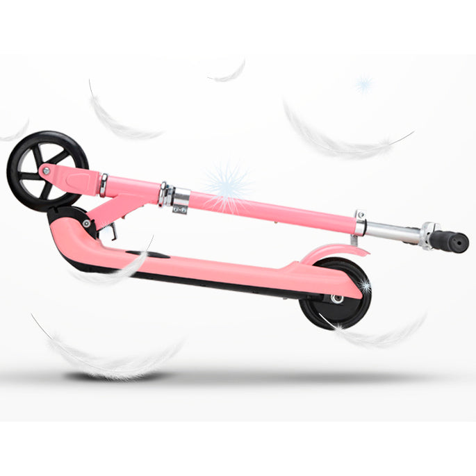 Scooter Eléctrico Plegable Urbano Infantil, batería de litio 24 V-2.5 AH, motor 120 W, llantas de 5×1, freno en rueda trasera y manubrio ajustable. Este vehículo cuenta con velocidad máxima de 5 km/h* y autonomía de 5 km*. Finalmente, el scooter permite plegarse fácilmente para guardarlo en tu auto o subir al metro. Altura del suelo 5 cm.